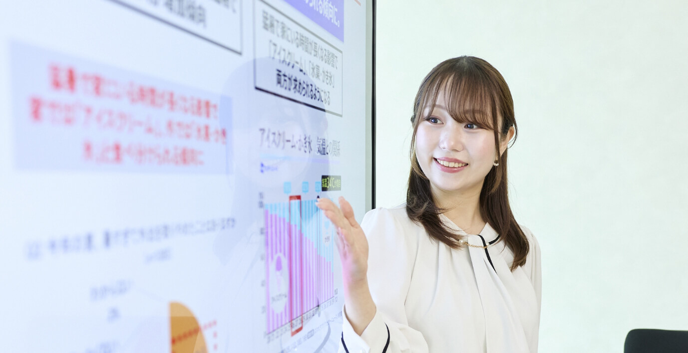 おいしさにこだわるだけでなく、健康や機能性も追求している商品づくりに魅力を感じました。国内外での事業に力を入れている点も惹かれたポイントです。そして、就職活動を通して先輩社員のみなさんが、「かがやく“笑顔”のために」という森永乳業のスローガンを体現されているのを実感したことが決め手になりました。