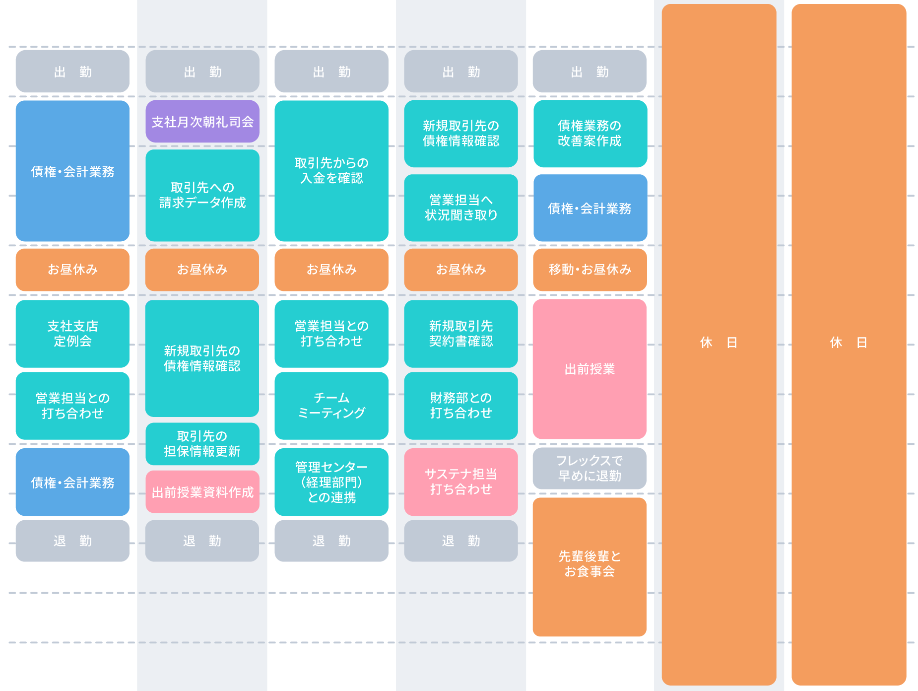 営業推進部は、部署名の通り営業部の業務推進をサポートするとともに、支社全体の取引や資金の管理も担っており、私は主に債権業務を担当しています。「債権」とは当社の商品やサービスを購入してくださるお客さまから受け取るお金や権利を指し、「債務」は自社が支払わなければならないお金や義務のことです。