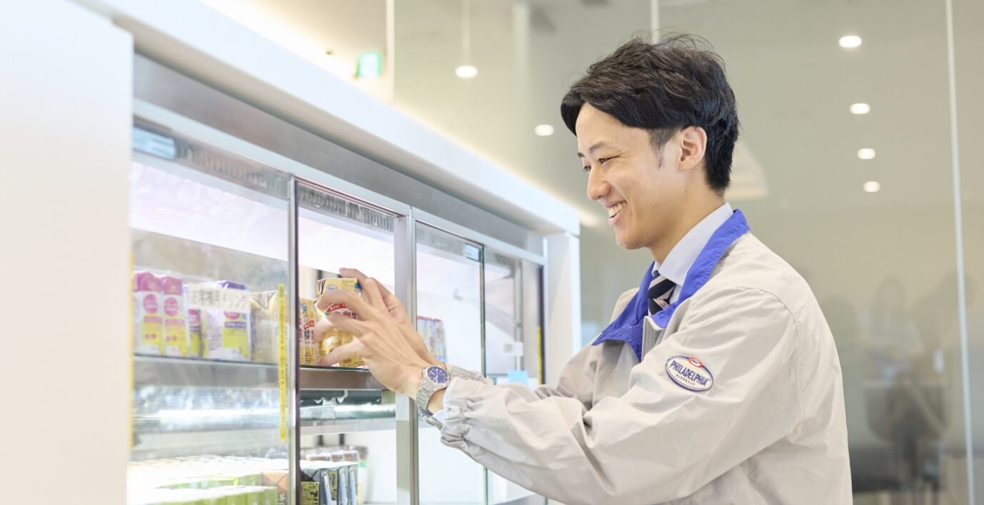 食を通じて人の健康に寄与できる仕事に就きたいと思い、食品メーカーを志望。森永乳業は商品ラインナップが多彩で、幅広い年齢層にアプローチできる点に魅力を感じました。自分自身も、さまざまな商品を取り扱うことで、いつも新鮮な気持ちで仕事に向き合えると感じたことも、入社の決め手になりました。